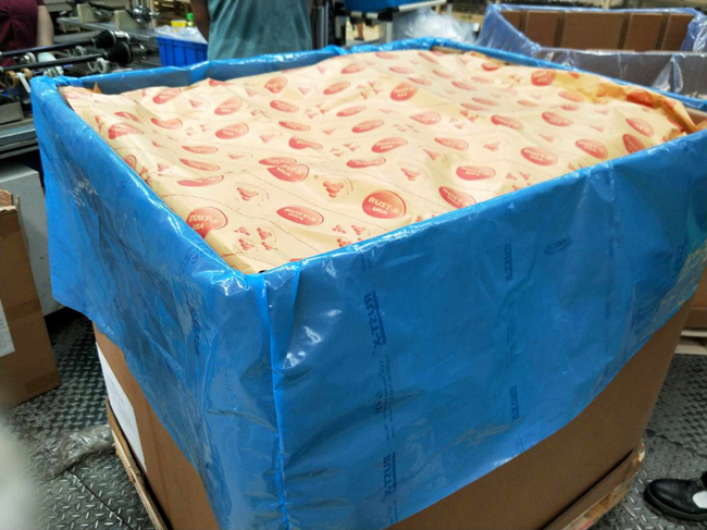 防銹紙應(yīng)盡可能與產(chǎn)品表面緊密接觸,被保護(hù)金屬產(chǎn)品與防銹紙