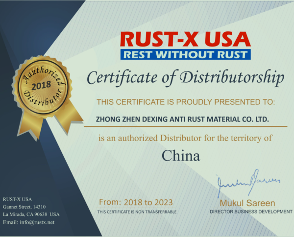 2017年10月25日中圳德興(北京)防銹材料有限公司成為美國(guó)RUST-X中國(guó)總經(jīng)銷商。