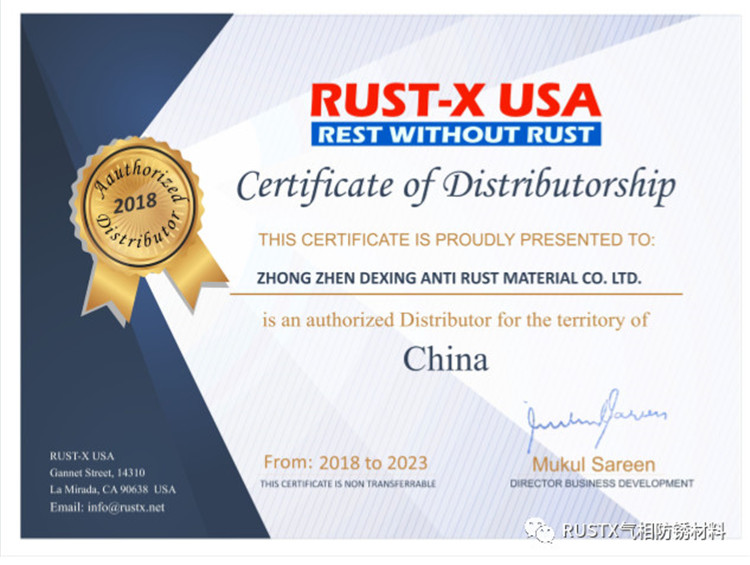 2017年10月25日中圳德興(北京)防銹材料有限公司成為美國RUST-X中國總經(jīng)銷商。