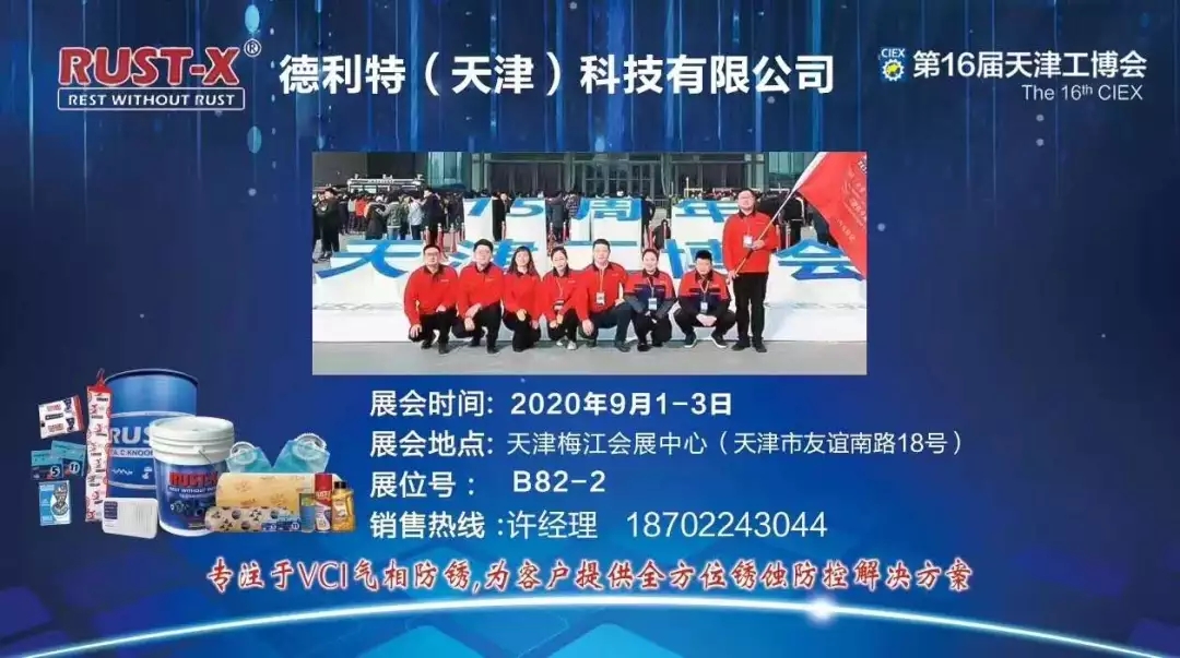 2020年9月1日至3日, 天津梅江會(huì)展中心N2館B087-2展位, 德利特(天津)科技有限公司 全體技術(shù)人員期待您的蒞臨! 風(fēng)里雨里我們?cè)谔旖蛎方饶? 銹蝕防控?zé)峋€:18702243044