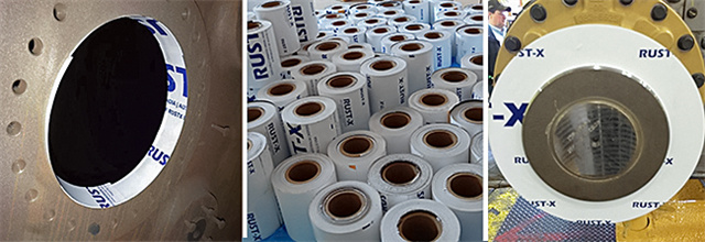 經過產品試驗表明,氣相防銹貼紙VCI-965,在90攝氏度,連續(xù)3次,一次半小時烘烤的情況下不影響防銹效果,不脫膠,后期不會影響設備裝配。此方法減少工序,降低成本。