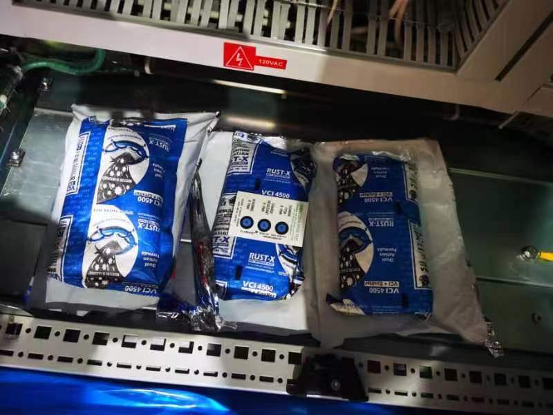 根據(jù)客戶要求,我們推薦使用氣相防銹干燥劑VCI-4500,直接將干燥劑放置配電柜底部,干燥劑吸收多余濕氣,同時VCI氣相緩蝕劑通過揮發(fā)達到不接觸防銹效果。