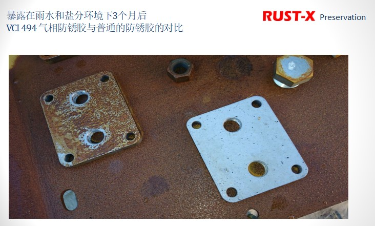 氣相防銹膠分子疏水性強,抵制水分或水滲入所形成的保護層,保護金屬免受銹蝕。氣相防銹膠在抗酸性氣體方面是高度活躍的,能在酸性環(huán)境中提供理想的銹蝕保護,比如:酸浸區(qū)域或海洋濕度環(huán)境。